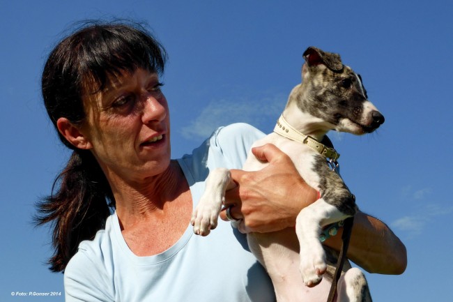 In Donaueschingen trafen wir Peter Gonser, der seit vielen Jahren immer tolle Fotos von den Windhunden schießt. Es war eine große Ehre für uns, dass klein-Eni nicht ungeknipst an seiner Linse vorbei huschen durfte 😉