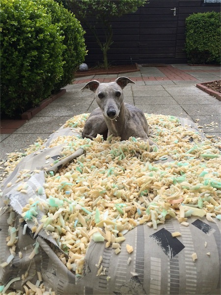 Das letzte Kommando hätte ich ihm gern gegeben, als er auf dem Kissen scharrte. Leider habe ich es nicht gesehen. Das Ergebnis sah dann so aus: