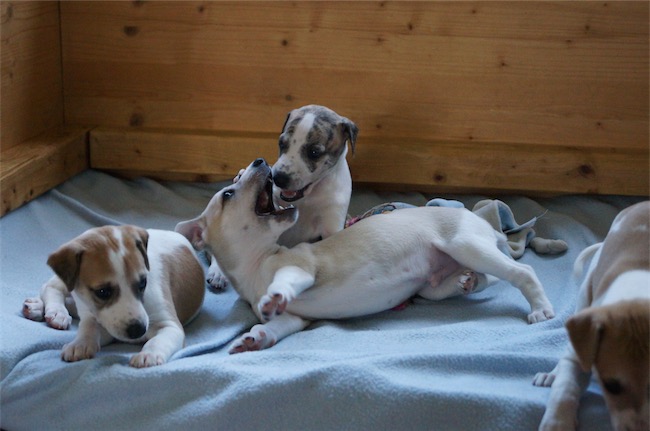 Am Wochenende werden wir stundenweise mit ihnen ins Welpenhaus gehen, damit sie das schon ein bisschen kennenlernen.