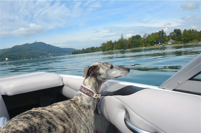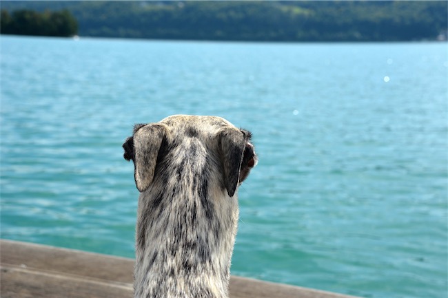 Steffi schickt häufig Bilder von Gina, die das Wasser schon als Welpe für ihr Element erklärt hat. Belle Petit semper-crescendo, Emily, wagt sich nicht ganz so tief hinein- sie ist eher ein Mitfahr-See-Hund 😉