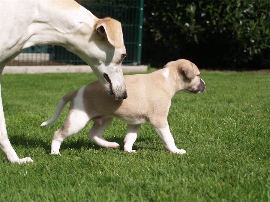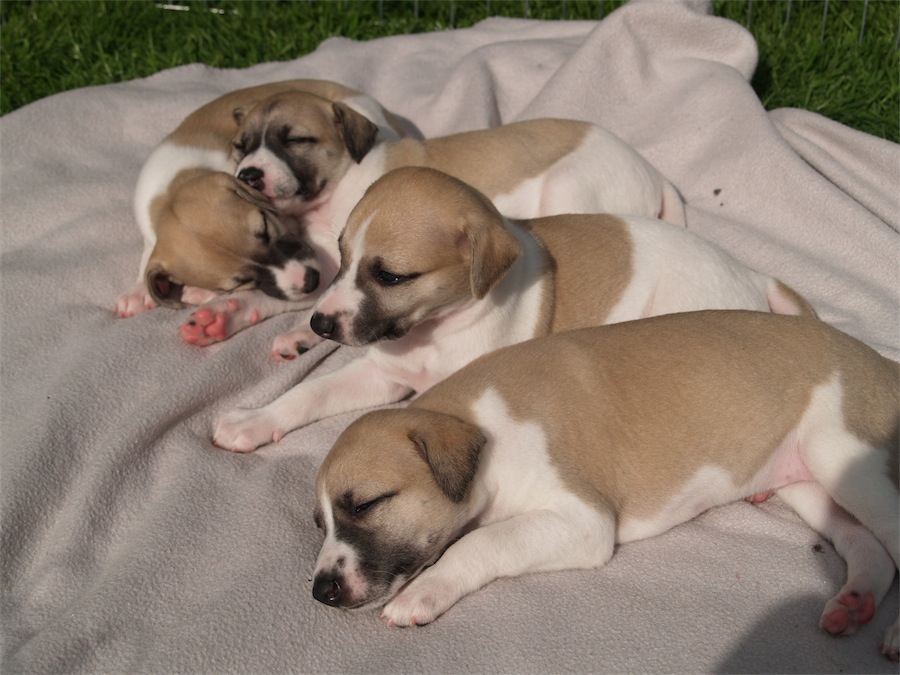 Heute habe ich das schöne Wetter genutzt und die Zwerge das erste Mal in den Garten gelassen. Wiese unter den Pfoten macht eine Menge Spaß- ermüdet aber auch.