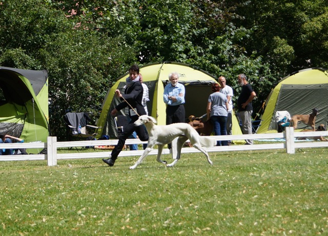 Am Nachmittag stachen Fynn und Grace um das Vet.BOB, was an Grace ging. Damit war sie für den Ehrenring qualifiziert. Auch hier zeigte sie, dass sie mit 11,5 Jahren noch lange nicht zum alten Eisen gehört und auch locker noch einen Barsoi überholen könnte (was sie natürlich nicht durfte). Das beeindruckte Frau Permo offensichtlich sehr und sie sprach GRACE den